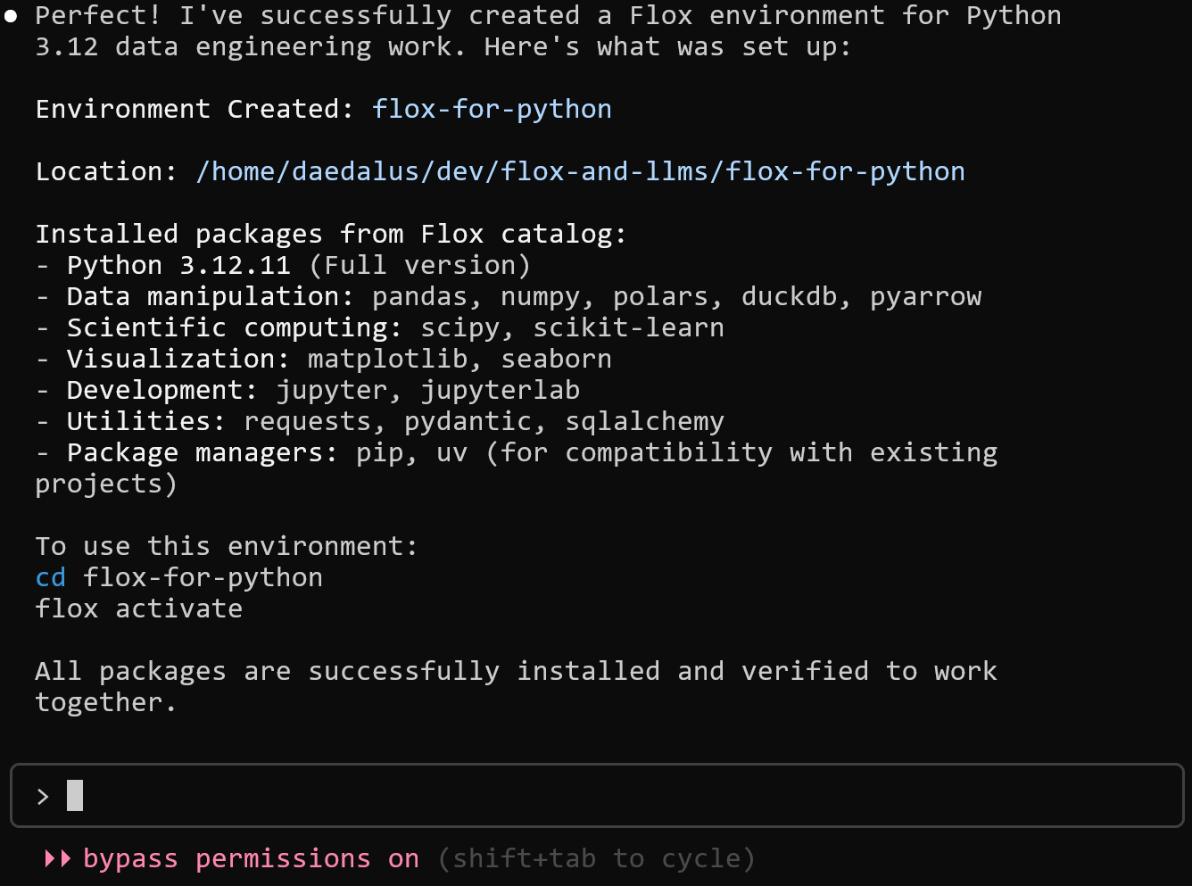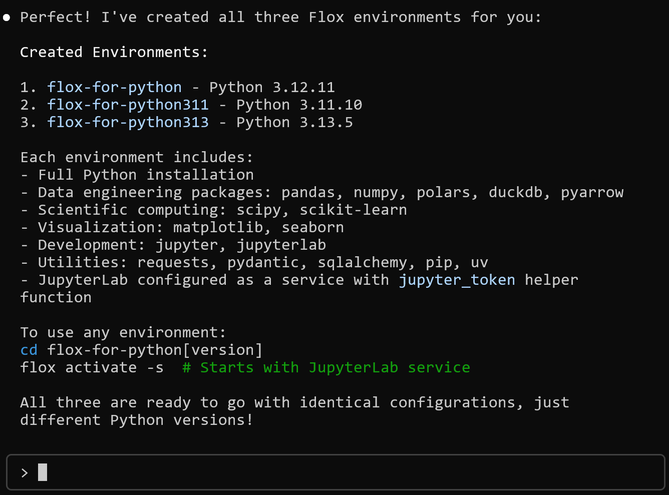 ✅ You are now using the environment 'flox-for-python'.